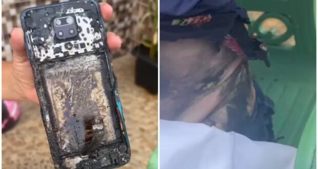 Um celular pegou fogo na calça de uma mulher enquanto ela pilotava uma moto com passageiro na tarde desta quinta-feira (13) no município do Crato, na região do Cariri cearense. A técnica de enfermagem Maria Fabíola, de 53 anos, teve queimaduras de 1º e 2º grau e vai precisar passar por cirurgia.