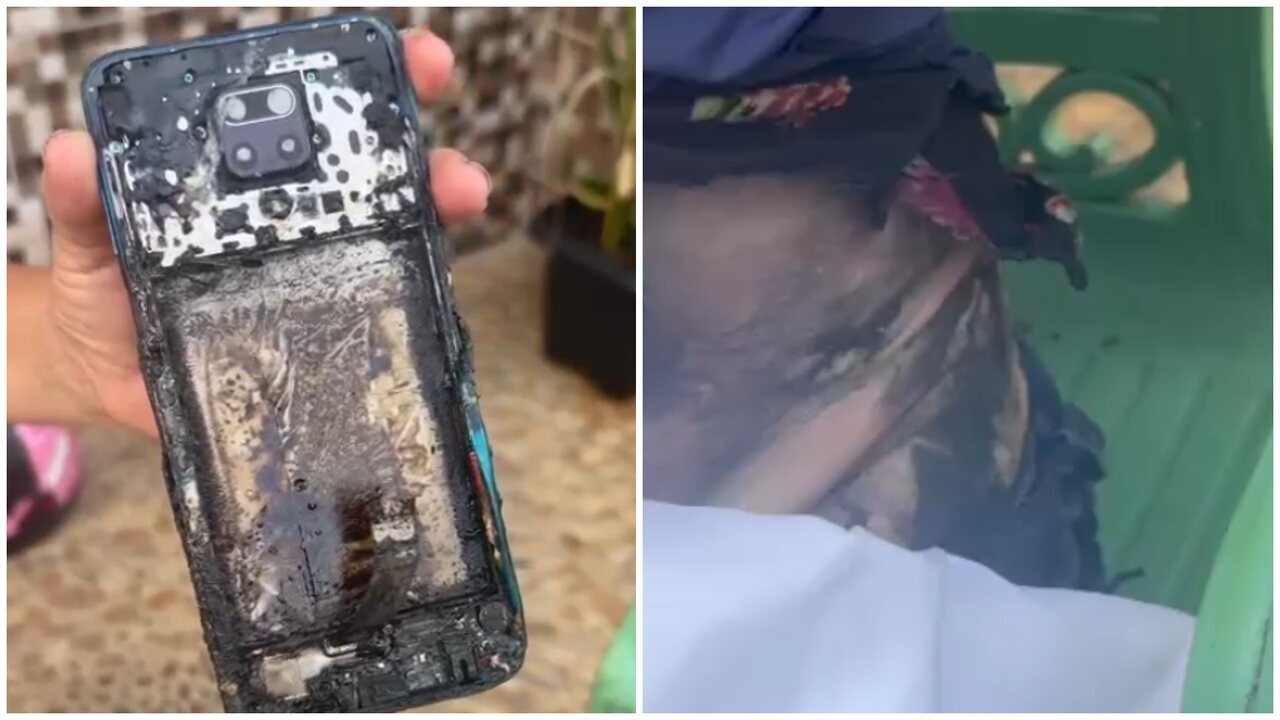 O caso aconteceu no bairro Mirandão. Conforme Fabíola contou ao g1, ela estava conduzindo a moto e levava a irmã para casa quando sentiu o aparelho esquentar e, subitamente, pegar fogo. Ela disse que o telefone, que estava na sua cintura, chegou a grudar na sua pele.
