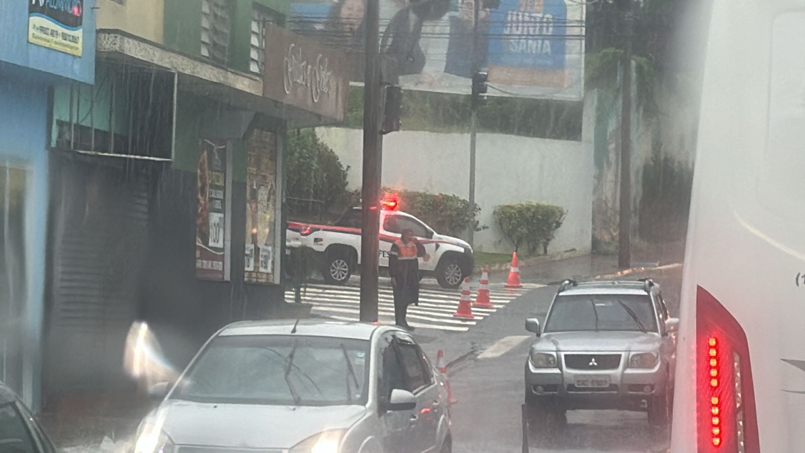 A chuva que caiu na tarde desta sexta-feira (12), inundou novamente toda a região do Terminal Rodoviário. A Defesa Civil interditou a via e orienta aos motoristas e pedestres que busquem caminhos alternativos.