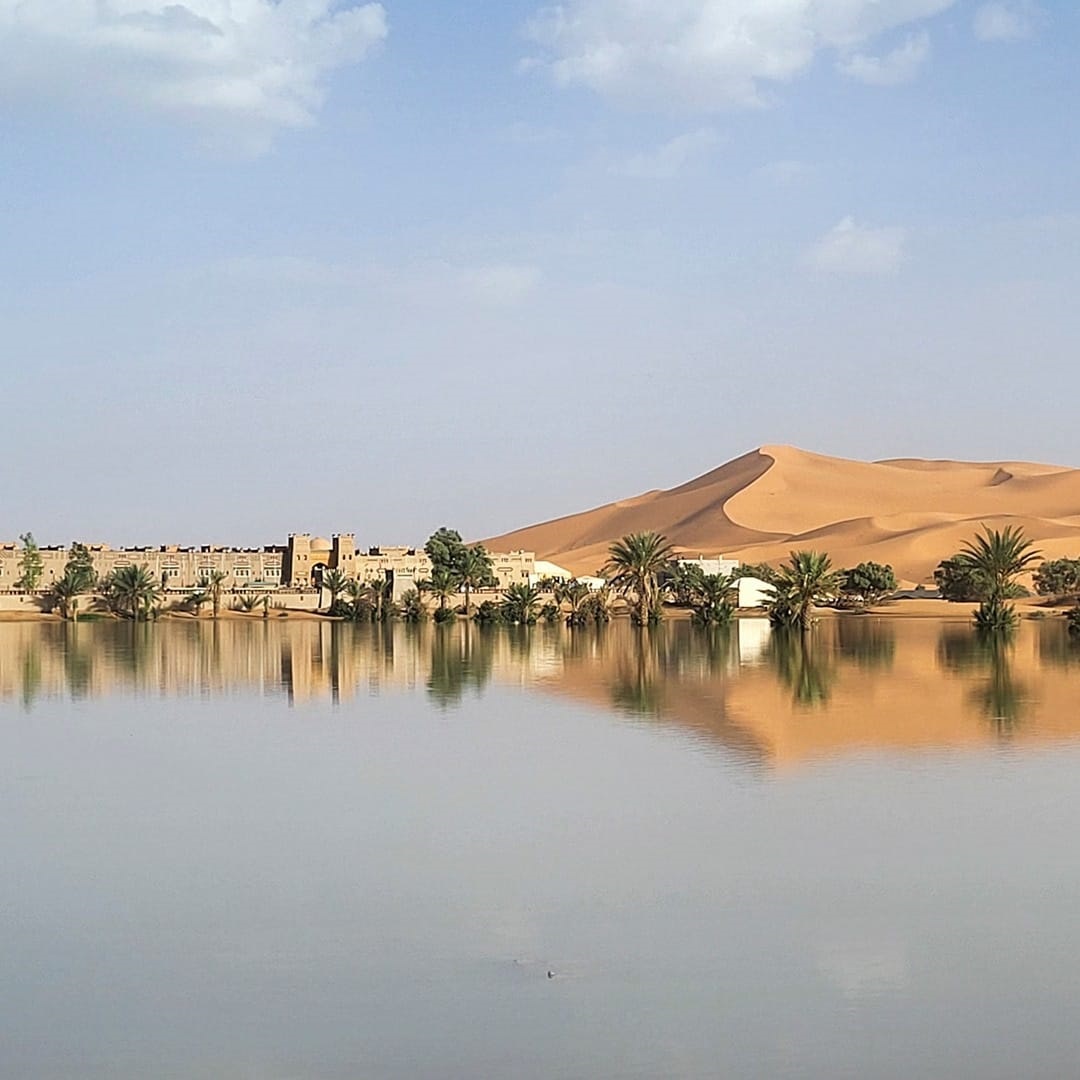 Uma chuva excepcional formou lagoas entre as palmeiras e as dunas do deserto do Saara, trazendo umidade para uma das regiões mais áridas do planeta. O deserto do sudeste do Marrocos está entre os locais mais secos do mundo e raramente recebe chuvas no final do verão.
