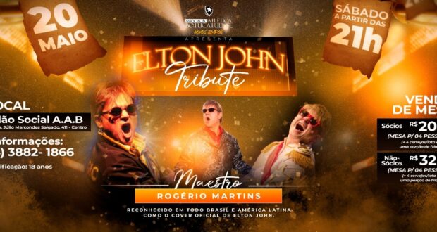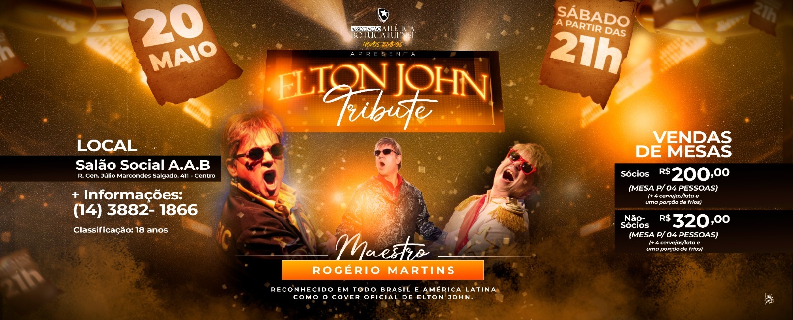 O Salão Social da Associação Atlética Botucatuense recebe no sábado (20), a partir das 21h, o espetáculo musical “Elton John Tribute”.