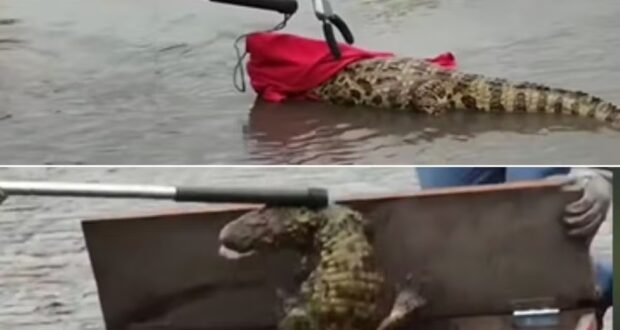O Corpo de Bombeiros resgatou um jacaré no estacionamento de uma empresa em Cubatão (SP). Um vídeo, obtido pelo g1 neste domingo (10), mostra o réptil se debatendo em uma poça d’água antes de ser contido pelos agentes e colocado em uma caixa de madeira (assista acima).