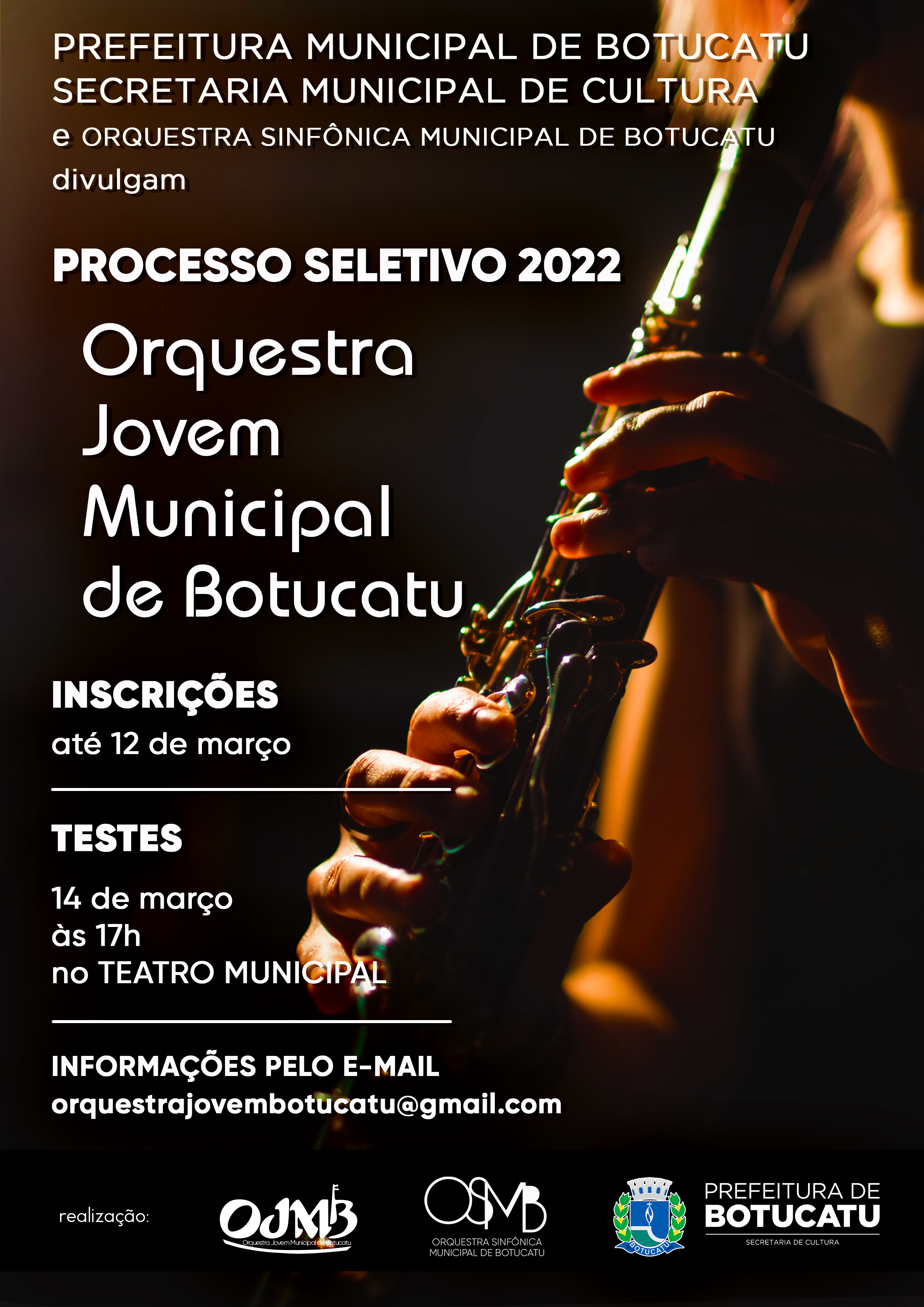 A Secretaria Municipal de Cultura está recebendo inscrições para o credenciamento ao processo seletivo para a Orquestra Jovem Municipal de Botucatu. As inscrições seguem até o dia 12 de março.