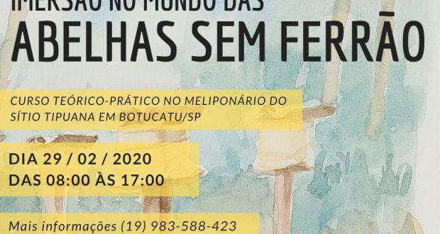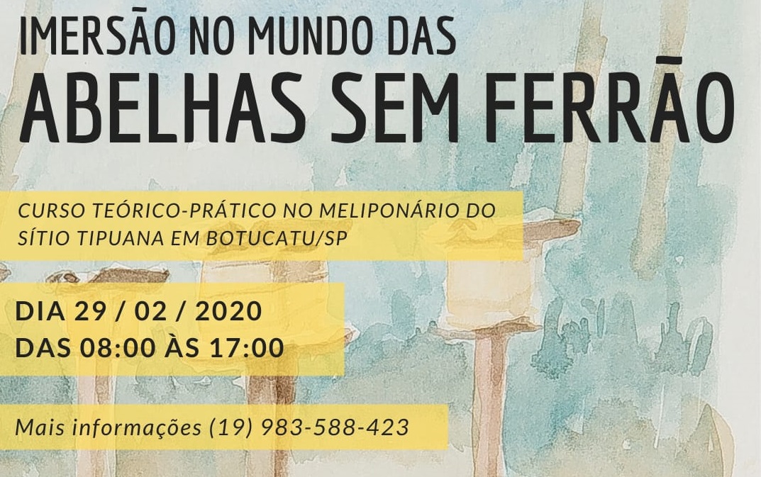 No próximo dia 29/02 será realizado em nossa cidade o Curso Teórico e Prático sobre Imersão no Mundo das Abelhas sem Ferrão. O Curso será das 08h00 às 17h00 no Meliponário do Sítio Tipuana aqui em nossa cidade