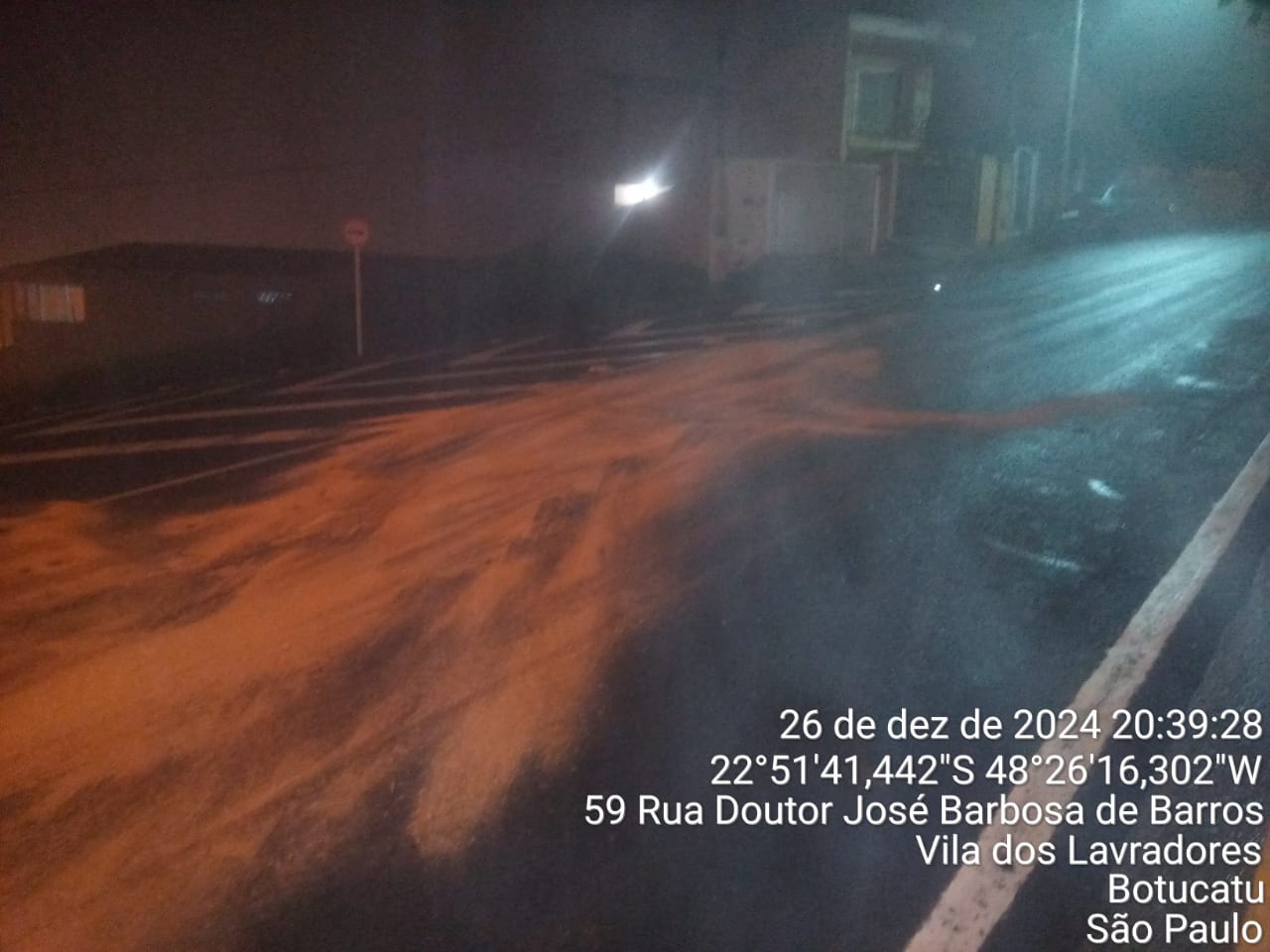 Uma testemunha, que entrou em contato com a Defesa Civil, relatou que várias motos escorregaram no trecho próximo ao semáforo da movimentada rua Major Matheus, onde a quantidade de óleo na pista era significativa.