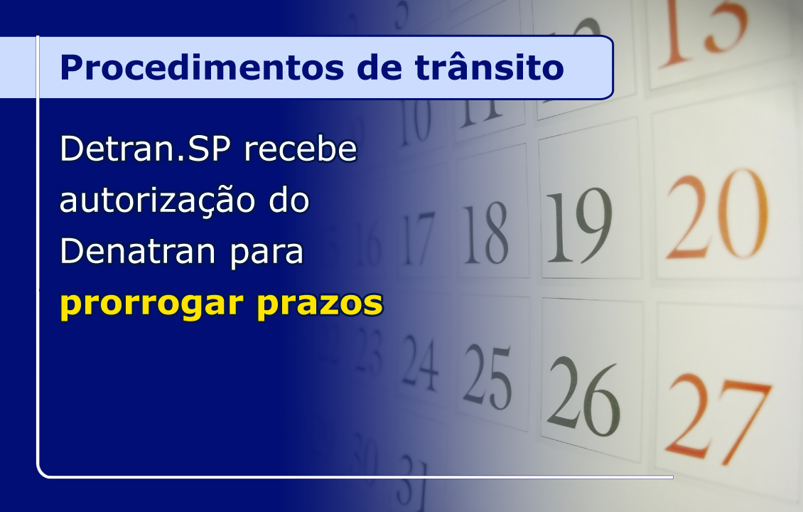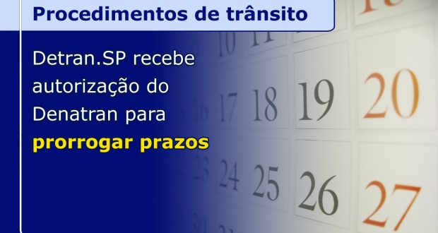 O Detran.SP obteve na última quarta-feira (24/3) autorização do Denatran (Departamento Nacional de Trânsito) para prorrogar, por tempo indeterminado, os prazos de procedimentos de trânsito. O presidente do Detran.SP, Ernesto Mascellani, que também comanda a Associação Nacional dos Detrans (AND), fez ver ao órgão federal que a suspensão dos prazos era fundamental para defender os interesses dos cidadãos.