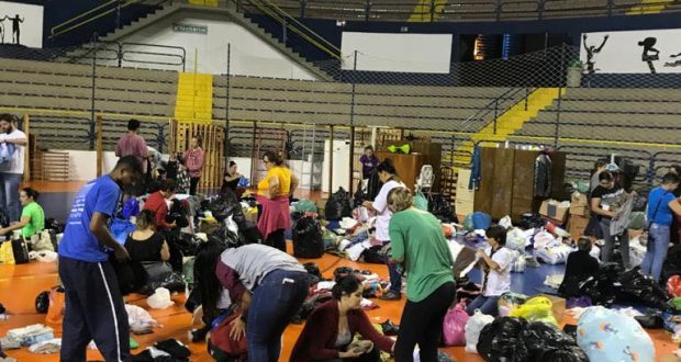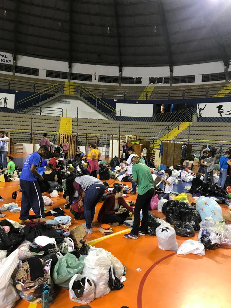 Milhares de peças de roupas e sapatos, cobertores, colchões e móveis, além de toneladas de alimentos foram doados no Ginásio Municipal. Todo o material foi depositado na quadra e vem sendo separado pelas equipes da Prefeitura para entregar às famílias.
