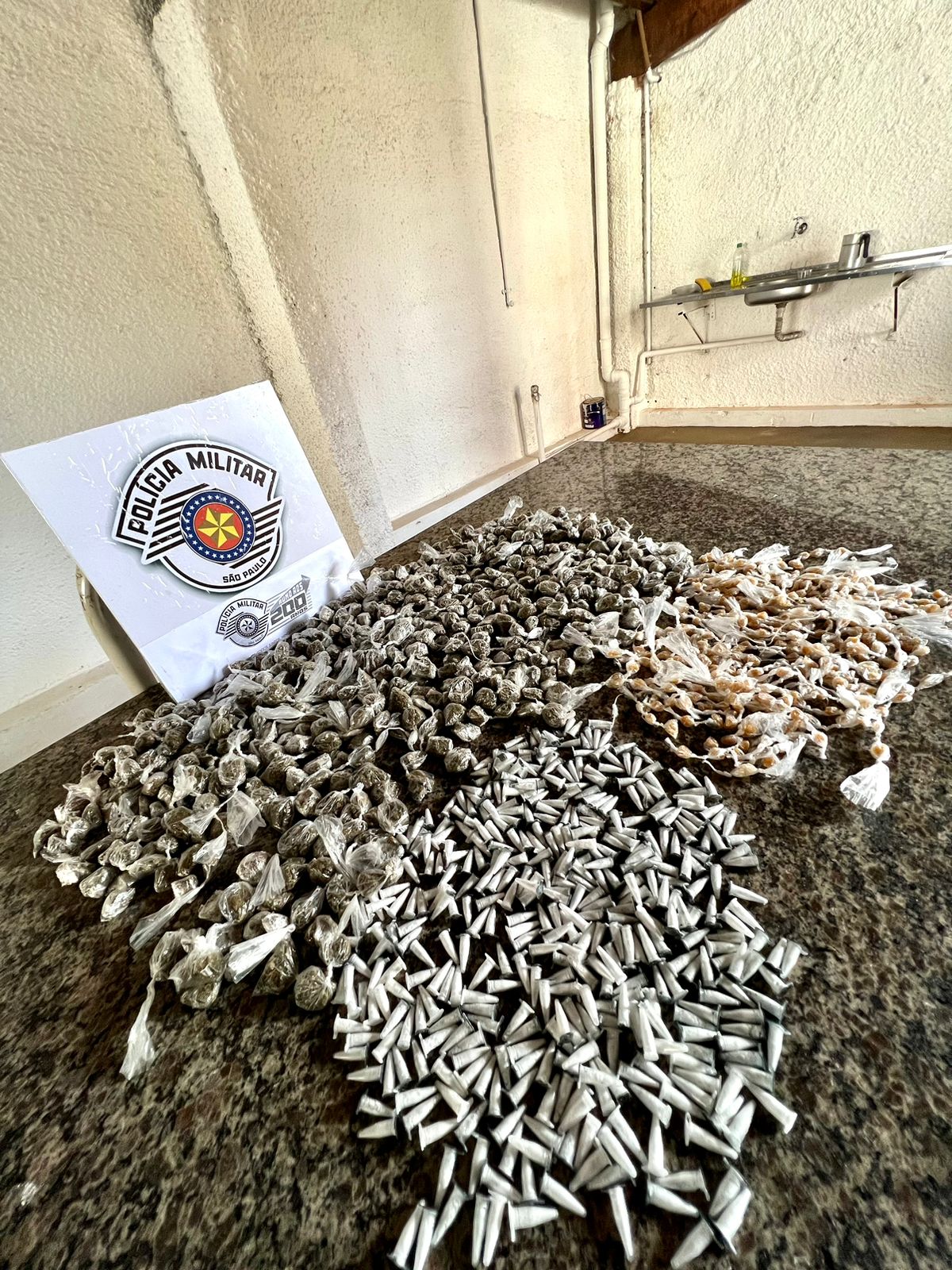 De posse dessas informações as equipes policiais iniciaram o patrulhamento naquela localidade e ao ser efetuada a abordagem em dois indivíduos que se encontravam em atitude suspeita, foi localizada com eles uma grande quantidade de entorpecentes: 611 porções de maconha, 419 de cocaína, 401 de crack e R$ 84,00 em espécie.