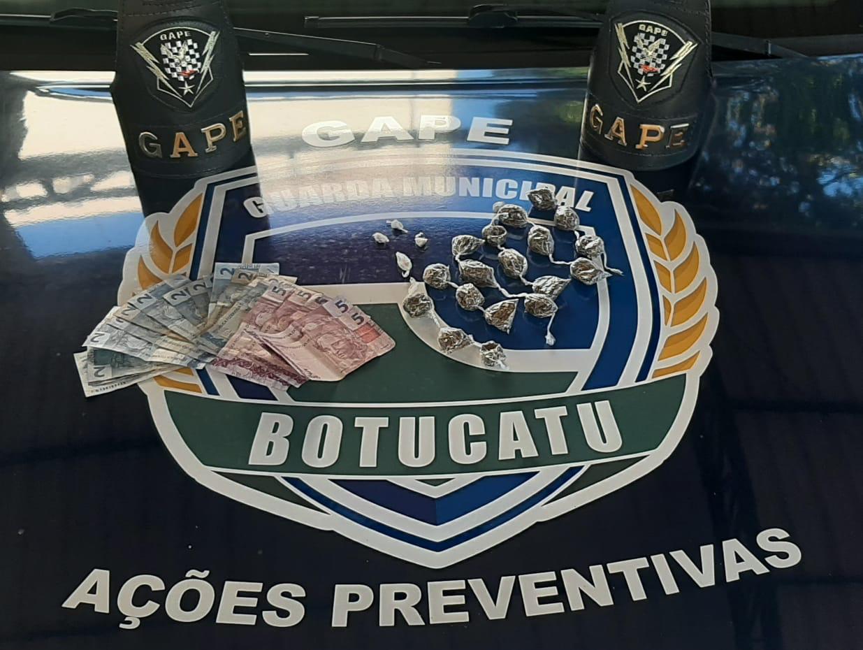 Em revista pessoal foi encontrado com o Adolescente de 15 anos 4 porções análogas ao crack localizado no bolso da bermuda além da quantia de 20 reais, oriundo de vendas já realizadas, com o outro suspeito de 21 anos foi encontrado em sua bermuda 18 porções análogas à maconha no bolso de sua bermuda, além de 33 reais, dinheiro esse de vendas já realizadas segundo o mesmo. Ambos de pronto confessaram estar comercializando entorpecentes no local.