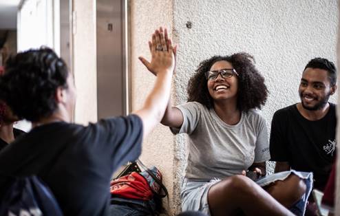 Unindo teoria com competências socioemocionais, educadores se inspiram em filosofias africanas de educação popular para empoderar. Uma delas é a Ubuntu – que significa “eu sou, porque nós somos” – e, por meio dela, os jovens aprendem essa dimensão de coletividade. A outra, é a filosofia Sankofa, que significa “volte e pegue”. O Sankofa incita um resgate à ancestralidade e um mergulho em sua própria história e raízes em busca de autoconhecimento e um fortalecimento pessoal.
