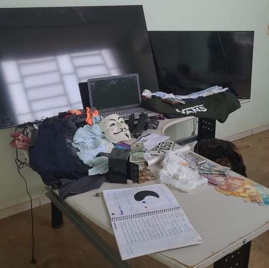 No interior da casa dele, durante buscas, os militares apreenderam aparelhos de televisão, notebook, documentos de terceiros, celulares, documentos de um veículo furtado em Brotas e recuperado pela PM em Jaú, além de cerca de 100g de droga, entre crack e cocaína, valores em dinheiro, um simulacro de arma, balança de precisão e um caderno, com a contabilidade do tráfico.