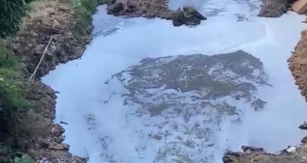De acordo com informações apuradas, o problema teve início após uma erosão registrada na tarde de terça-feira (15), que acabou atingindo uma tubulação da rede de esgoto nas imediações. O dano provocou o extravasamento e resultou na formação da espuma observada no leito do rio.