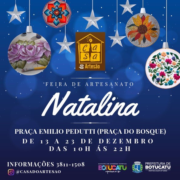 Até o dia 23 de dezembro a Feira de Natal atenderá no Shopping Park Botucatu, com a participação de dez artesãos locais, em uma parceria entre o Shopping e a Prefeitura, no horário das 10 às 22 horas.