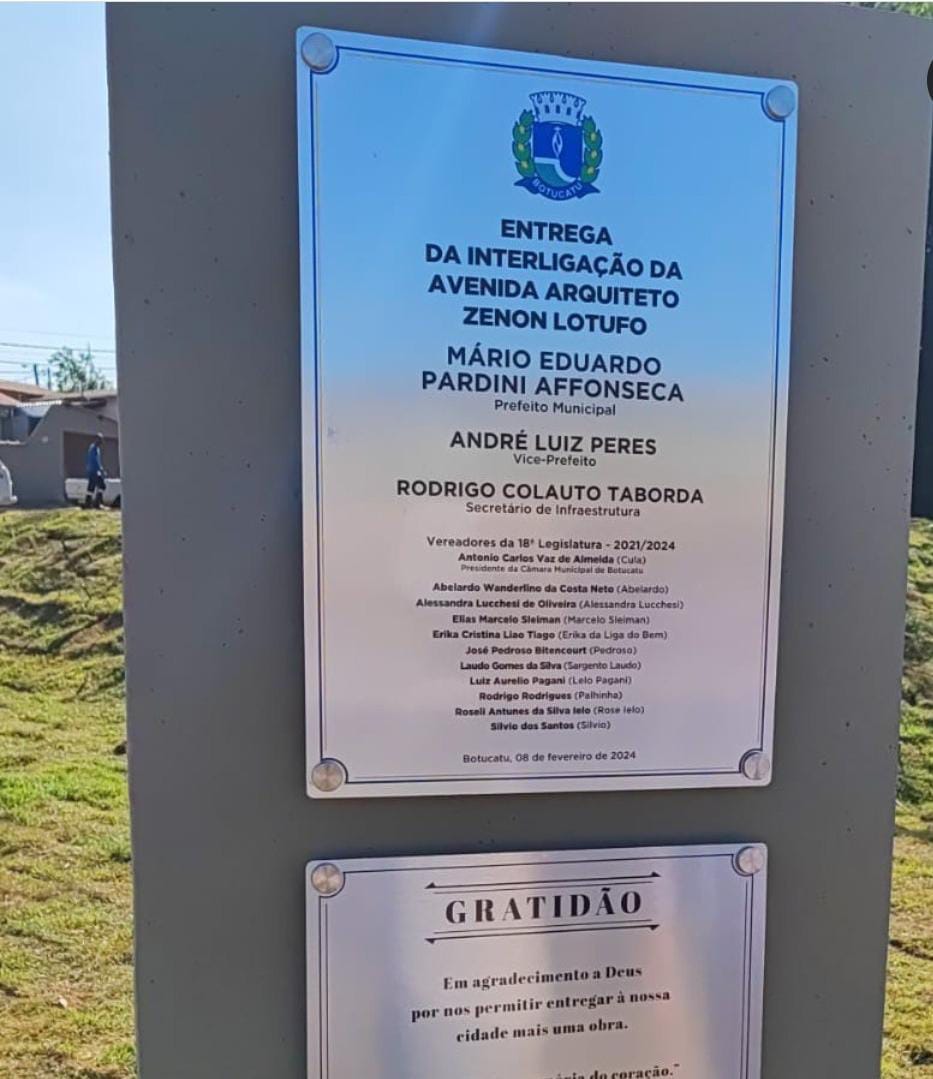 Na manhã desta quinta-feira (08), o Presidente da Câmara de Botucatu, vereador Cula (PSDB), e o vereador Pedroso (União), estiveram presentes na inauguração da interligação da avenida Arquiteto Zenon Lotufo, em cerimônia realizada próximo à pista de skate da Av. Conde de Serra Negra.