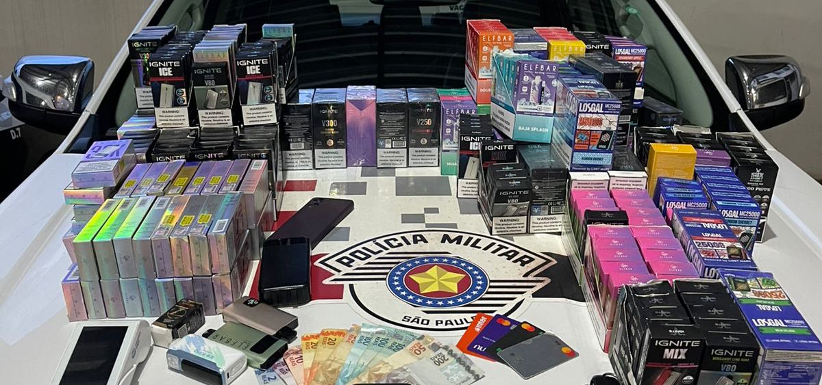 Segundo a Polícia Militar, a importação, venda e divulgação de cigarros eletrônicos são proibidas no Brasil por determinação da Agência Nacional de Vigilância Sanitária (Anvisa), o que configura crime previsto em lei.