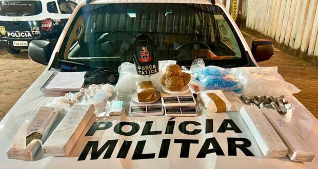 Na residência apontada, os policiais encontraram aproximadamente 4,6 kg de maconha, 1 kg de cocaína, três balanças de precisão, centenas de eppendorfs vazios, materiais para embalo e uma motocicleta possivelmente usada na distribuição.