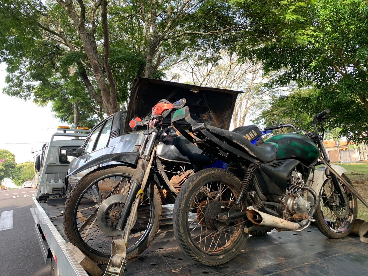 Foi recuperado três motos roubadas e uma moto apreendida para averiguação onde foram aprendidos os simulacros que foram utilizados no crime.