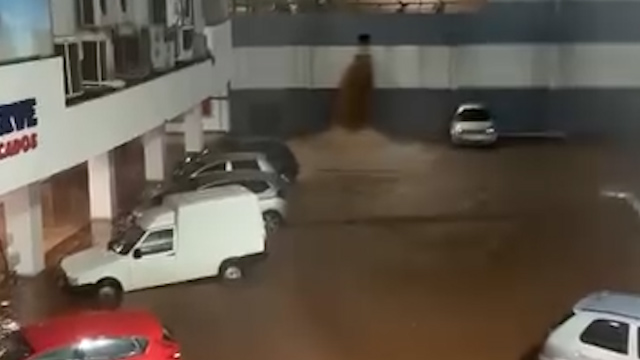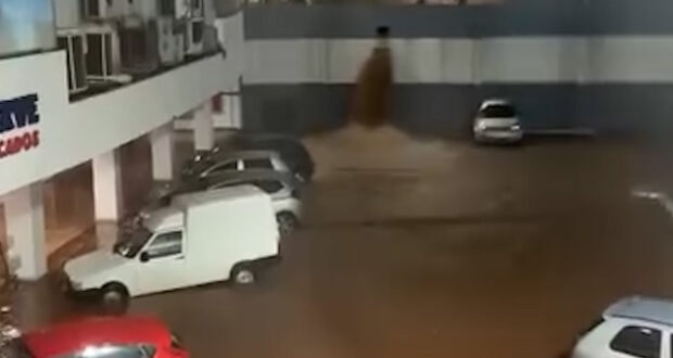 A forte chuva que atingiu Jaú e região provocou diversos transtornos. No Shopping Jaú, um encanamento de captação de água no muro não suportou a pressão, estourou e causou o alagamento de parte do estacionamento.