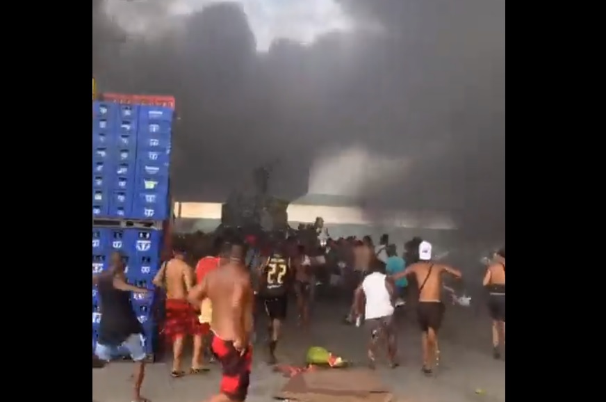 Vídeos que circulam nas redes sociais mostram uma multidão correndo em direção ao fogo para dentro das lojas. Nas imagens, é possível ver pessoas saindo com mercadorias e fazendo a distribuição. Segundo testemunhas, a polícia está no local tentando controlar a multidão para evitar saques às lojas, que já tiveram itens roubados.