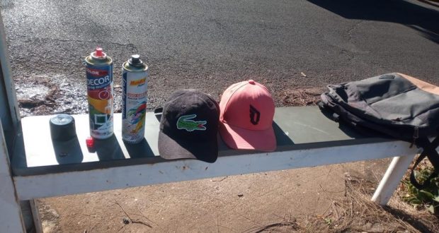 Na tarde de ontem, (21) a Guarda Civil Municipal foi acionada via 199, onde segundo denúncia, que pela praça pública Dona Chiquita no Jardim Planalto estariam dois adolescentes um de 13 anos e o outro de 15 anos pichando poste da praça.