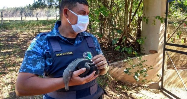 Na última quarta-feira, 22, o Grupo de Proteção Ambiental da Guarda Civil Municipal de Botucatu resgatou um filhote de tamanduá bandeira. Os agentes da GCM foram solicitados pela moradora de um sítio próximo ao bairro de Anhumas, distrito de César Neto, após encontrar o animal.