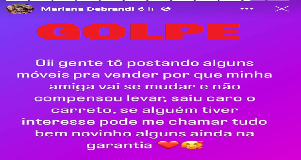 Aqui em Botucatu, tivemos a invasão do perfil da empresária Mariana Debrandi, que tem causado enormes transtornos. Os hackers invadiram a conta dele, trocaram a senha e estão se comunicando com seus “amigos do Facebook” ofertando produtos semi novos com valores muito inferior ao de mercado.