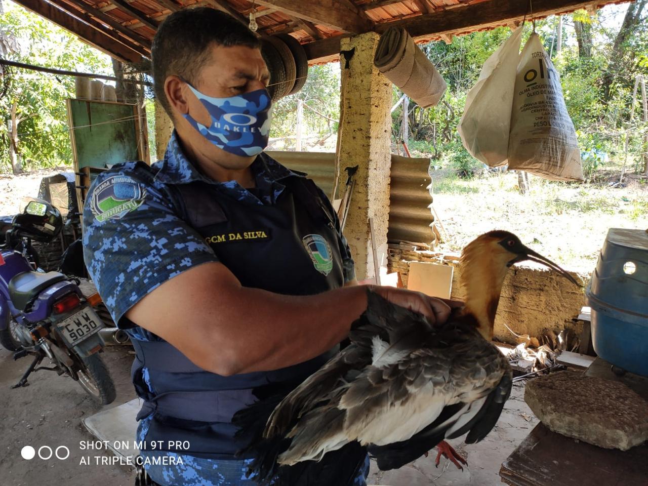 Os agentes do GPA foram acionados pelo morador dem um sítio localizado próximo ao morro do peru, que encontrou a ave da espécie curicaca ferida e com dificuldades de voar.