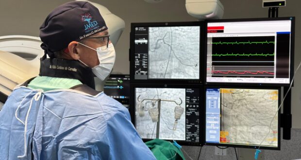 Tradicionalmente, a angioplastia coronária é guiada apenas pela angiografia, técnica que utiliza contraste injetado por cateter para visualizar as artérias e suas obstruções. “Com a utilização do ultrassom, conseguimos visualizar como está o interior da artéria. Temos a exata noção do tamanho do stent em relação à artéria com exatidão, o que não conseguimos com a angiografia, que é guiada somente pelo olhar e pela experiência do examinador”, afirma o médico cardiologista e coordenador do Serviço, Fábio Cardoso Carvalho.