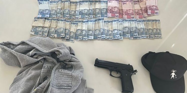 Com ele foi localizado um simulacro de pistola, R$ 100,00, uma chave de motocicleta e algumas peças de roupas.