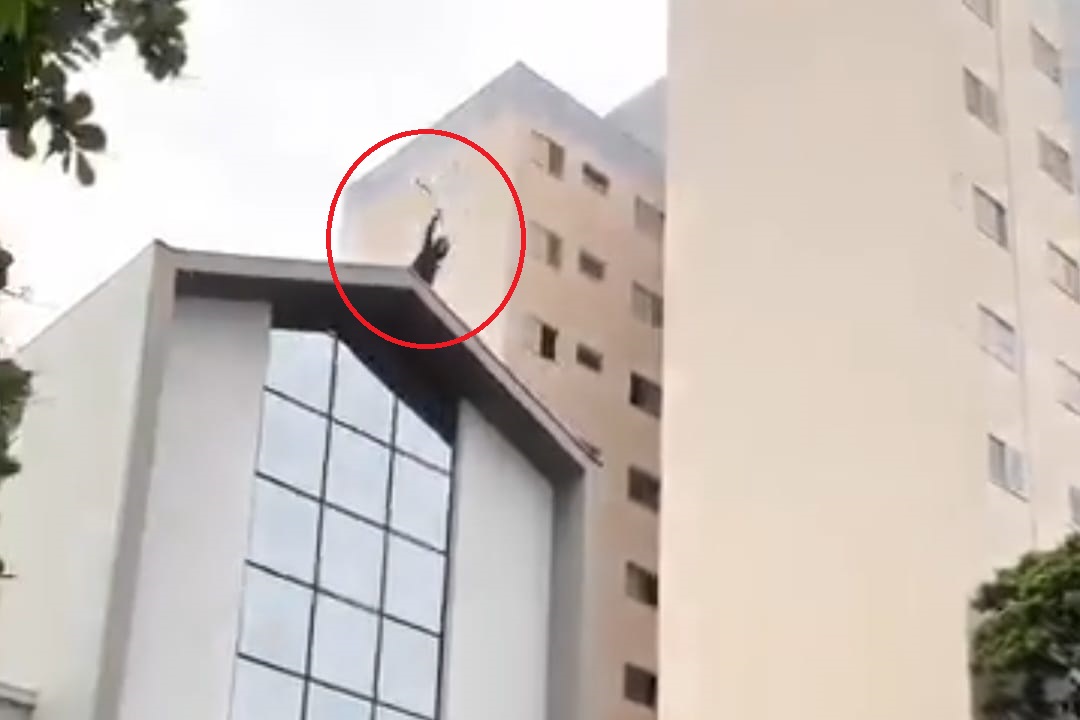 O incidente foi registrado por volta das 7h45, quando o homem começou a arremessar telhas ao chão. O Corpo de Bombeiros, a Polícia Militar e até o helicóptero Águia foram acionados, e equipes do Samu ficaram de prontidão no local.Foto: Reprodução