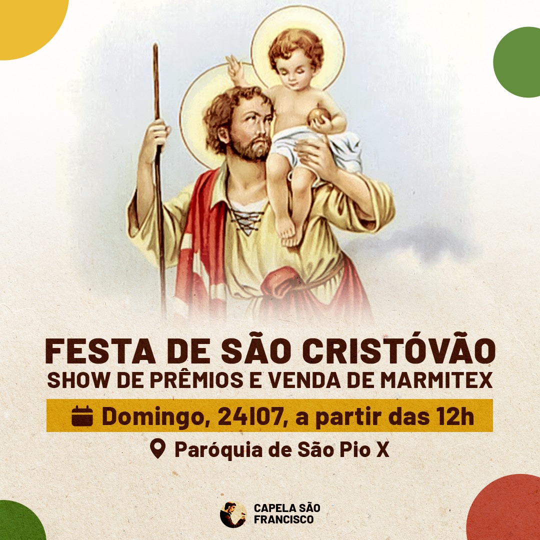 Neste domingo, 24, a partir das 10h, haverá missa e almoço em homenagem a São Cristóvão (comemorado dia 25 de julho), na capela que leva o nome do padroeiro, localizada na Rodovia Marechal Rondon, km 239 – Serra de Botucatu).