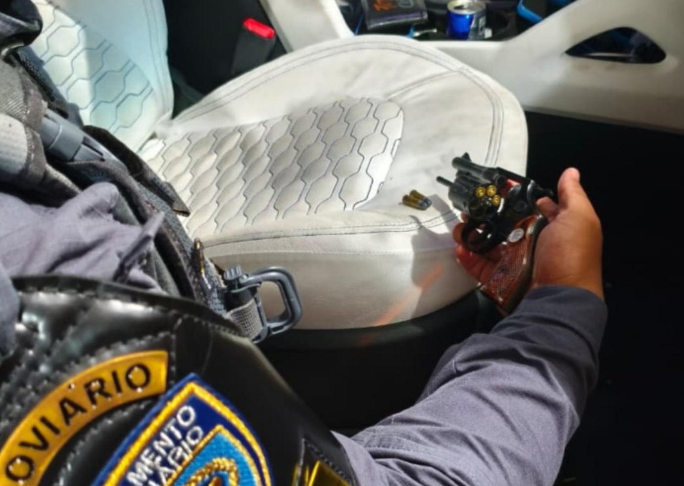 O grupo estava em um veículo Hyundai IX35 e informou aos policiais que seguia em direção ao Guarujá, no litoral paulista. Durante a revista no automóvel, os agentes encontraram um revólver calibre .32 carregado. Como nenhum dos ocupantes apresentou autorização para portar a arma, todos receberam voz de prisão no local.