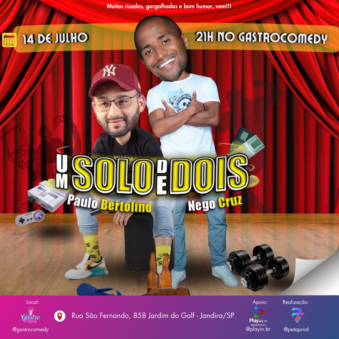 O show ficará por conta de Paulo Bertolino e Nego Cruz em Um Solo de dois. Um evento imperdível que vai alegrar você e toda a sua família!!