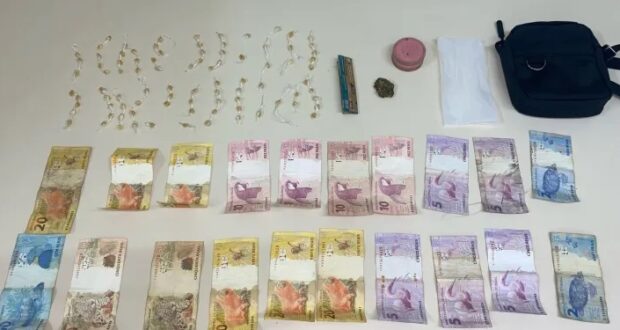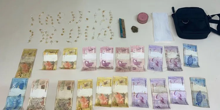 Durante a abordagem, os policiais encontraram com o jovem uma pochete contendo 89 pedras de crack (totalizando 21 gramas) e uma porção de maconha (5 gramas), além de R$ 394,00 em dinheiro. O adolescente confessou que realizava o comércio de drogas e que o valor encontrado era proveniente das vendas.