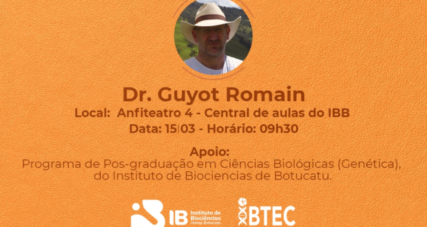 A palestra “Genome evolution of Coffee wild crop relatives”, com o Dr. Guyot Romain, ocorrerá no Anfiteatro 4 da Central Aulas do IB, às 09h30 do dia 15/03. Não será preciso inscrição prévia e o público alvo são pesquisadores, alunos de graduação e pós-graduação. O conteúdo será ministrado em inglês, com o palestrante tento domínio sobre o espanhol e francês.