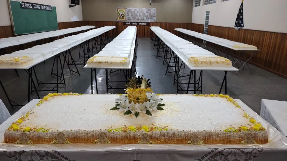 Igreja em Bauru produz ‘Bolo de Santo Antônio’ de 3 toneladas com medalhas e até pares de alianças