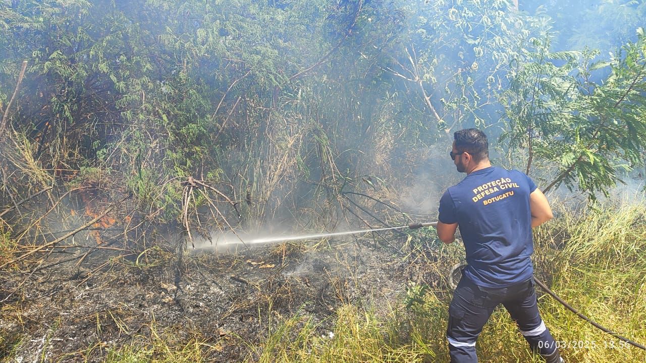 A Defesa Civil atendeu a uma ocorrência de incêndio em vegetação na Rua Nicola Zaponi, 100, nas proximidades do Shopping Park Botucatu. Ao chegarem ao local, os agentes constataram um incêndio em vegetação rasteira, com focos de chamas se alastrando rapidamente devido às condições climáticas secas e à vegetação densa.
