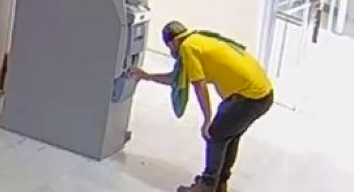 Imagens do circuito interno do palácio mostram o homem às 15h54 em frente à máquina, acessando a sua conta bancária por meio de biometria (polegar), sacando a quantia em dinheiro e contando as notas duas vezes, antes de guardar no bolso.