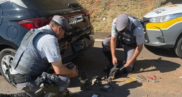 A ação começou por volta das 9h, quando uma equipe do Tático Ostensivo Rodoviário (TOR) sinalizou para que um carro parasse no pedágio de Itatinga. O motivo foi a película escura nos vidros, que impedia a visão do interior. O motorista, no entanto, desobedeceu e acelerou em fuga pela rodovia.