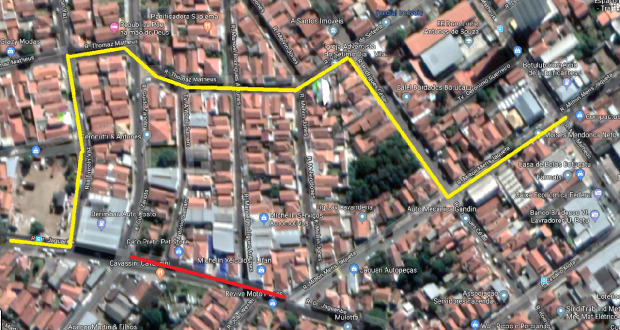 Devido ao fechamento da via a linha 109 – Cambuí – Itamaraty / Centro do Transporte Coletivo, sofrerá mudanças conforme exemplificado no mapa.