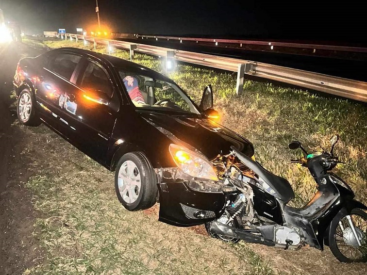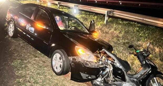 O carro colidiu na traseira da motocicleta Honda Biz, outros motoristas conseguiram sinalizar o trânsito e chamar o resgate.