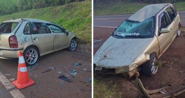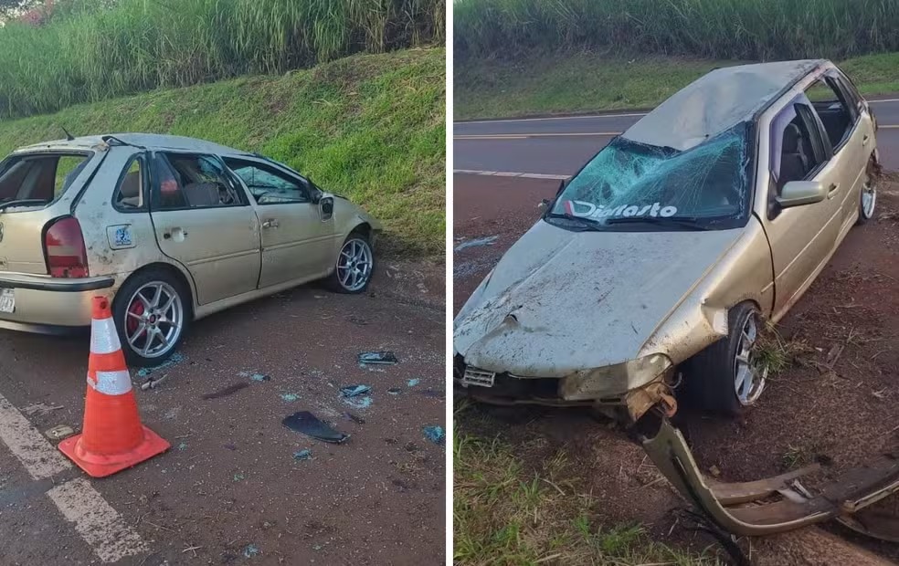 Um carro com seis pessoas capotou após ser atingido na traseira por outro veículo, na Rodovia Otávio Pacheco de Almeida Prado (SP-255), entre Jaú (SP) e Barra Bonita (SP). O acidente ocorreu na tarde deste domingo (3).