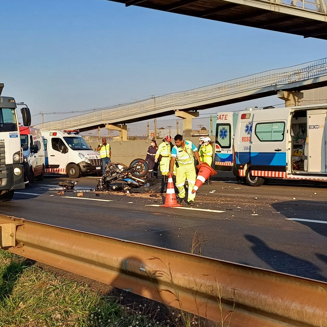 Duas pessoas morreram em um grave acidente envolvendo uma moto e um caminhão semi-reboque carregado de pedregulho nesta sexta-feira (16) em Jaú (SP).