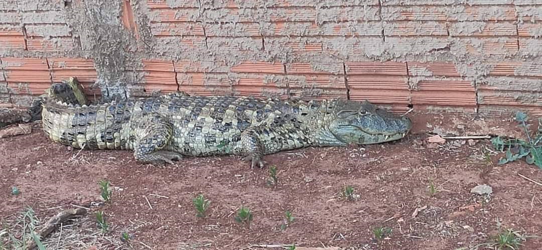 Na tarde de segunda-feira (23), um jacaré foi capturado em um condomínio às margens da vicinal José Maria Verdini, em Jaú.