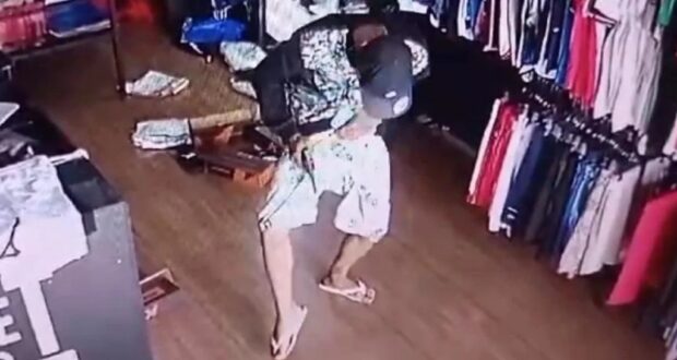 Um homem que estava assaltando uma loja de roupas em Belo Horizonte deu um tiro sem querer na própria perna. A cena foi gravada pela câmera de segurança da loja, no bairro Jaqueline, Zona Norte da cidade.