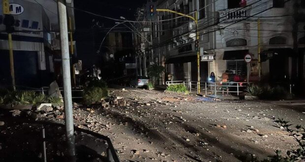 Não teve vítimas, mas a queda de beiral e de parte da laje e da marquise em prédio no centro de Jaú nesta sext-feira à noite deixou o principal cruzamento da cidade um caos. Após a queda de parte da marquise, a rede de energia elétrica teve uma explosão, causando a queda de energia na região central, deixando vias interditadas. Corpo de Bombeiros e Polícia Militar chegaram ao local e interditaram o local, que tem muito entulho espalhado.