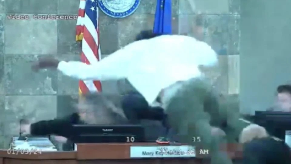 Em um incidente chocante ocorrido nesta quarta-feira (3), a juíza Mary Kay Holthus, do Tribunal Distrital do Condado de Clark, em Las Vegas (EUA), foi agredida enquanto proferia a sentença de condenação de um homem por crime de agressão.