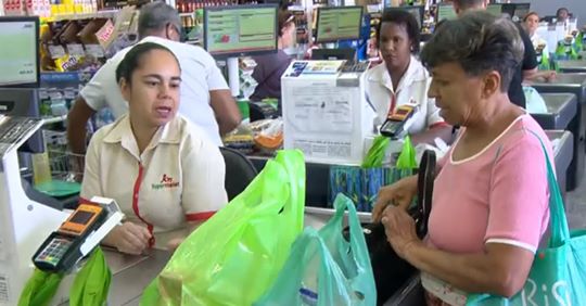 Supermercados do RJ estão proibidos de oferecer sacolas plásticas grátis — Foto: Reprodução TV Globo