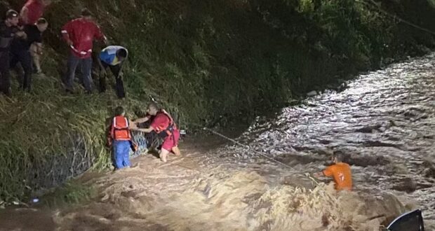 Antes de os bombeiros chegarem, um morador tentou fazer o resgate e entrou no córrego para ajudar. O morador também precisou ser resgatado. Por causa do alto volume de água, a correnteza no córrego ficou forte.