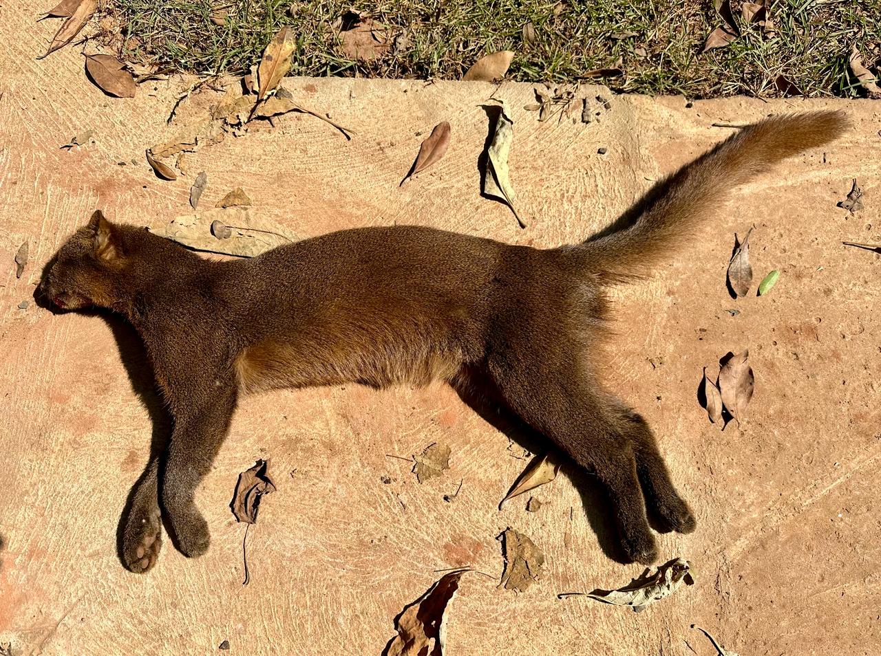 Em menos de 2 anos chegam a marca de mais de 60 tamanduás bandeira atropelados na região da Cuesta. Este Gato-mourisco faz parte das estatísticas dos tantos animais silvestres que estão a mercê desse risco diariamente em nossa região. Estando muitos destes em risco de extinção.